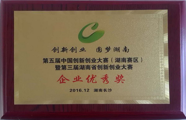 2016年第五屆中國創(chuàng)新創(chuàng)業(yè)大賽(湖南賽區(qū))企業(yè)優(yōu)秀獎